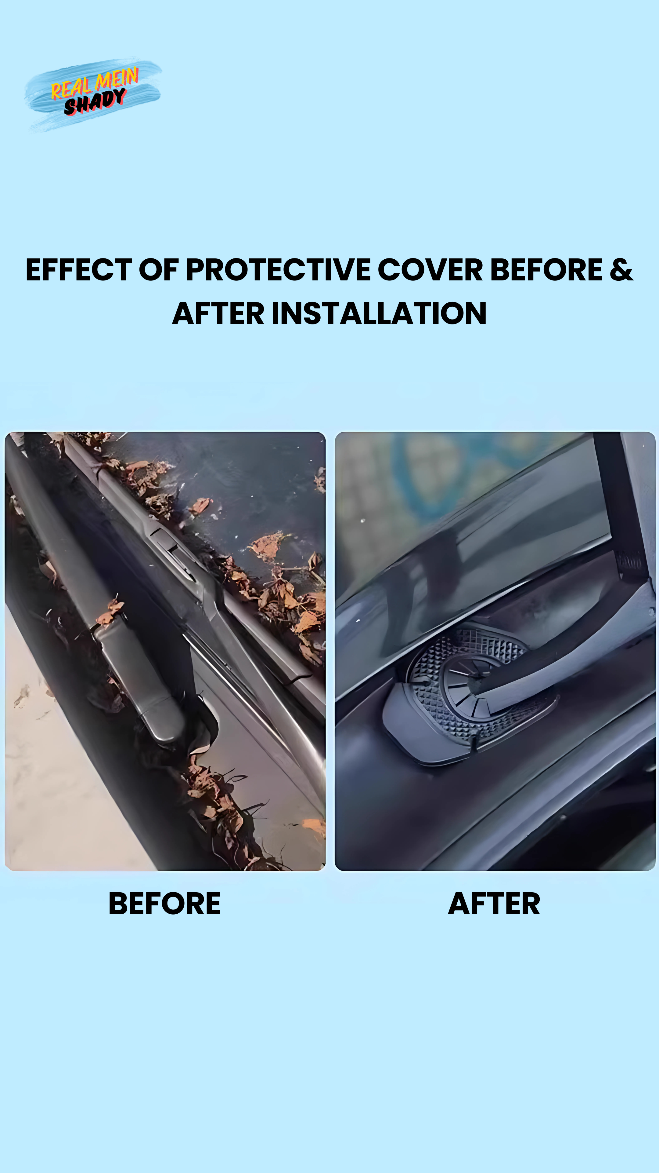 It’s a simple but smart cover that fits over the cavity where your windshield wipers rest — blocking dust, rain, leaves, & other unwanted guests from sneaking in.